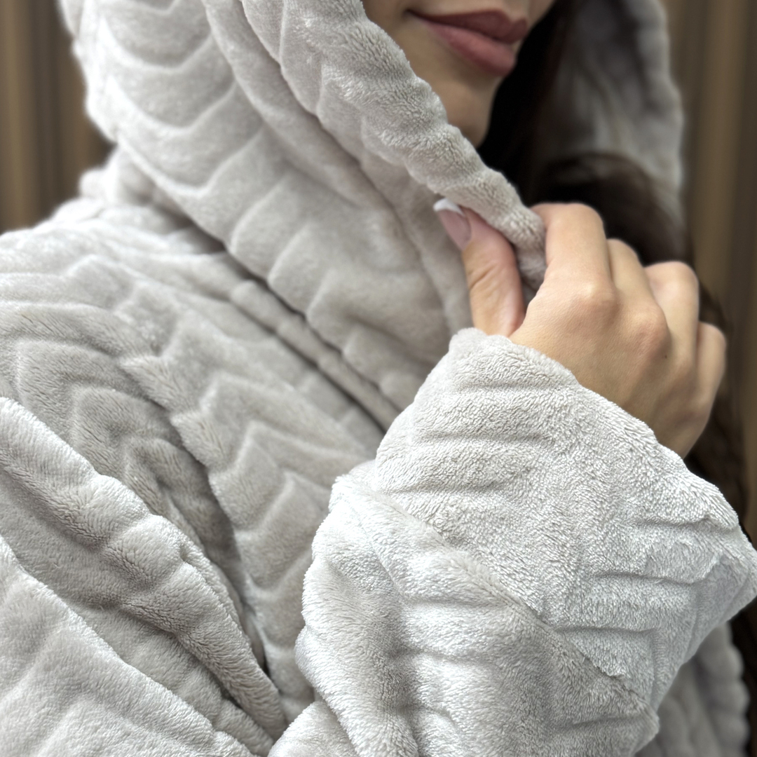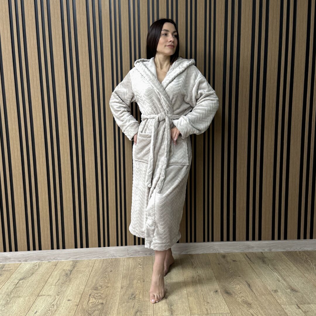 Жіночий плюш-халат - сріблястий рельєф