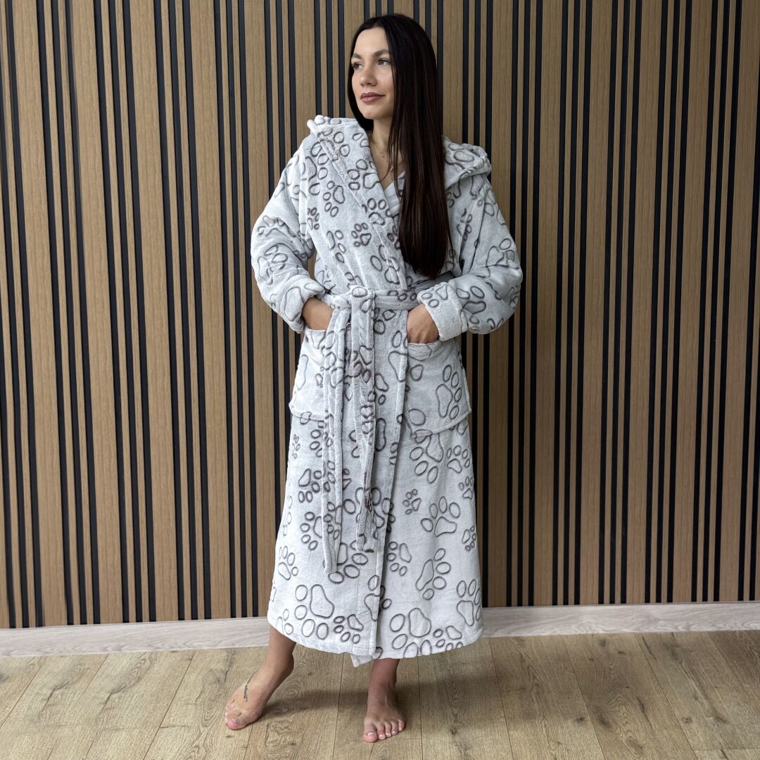 Жіночий велюровий халат «catwoman» - сіро-бежевий