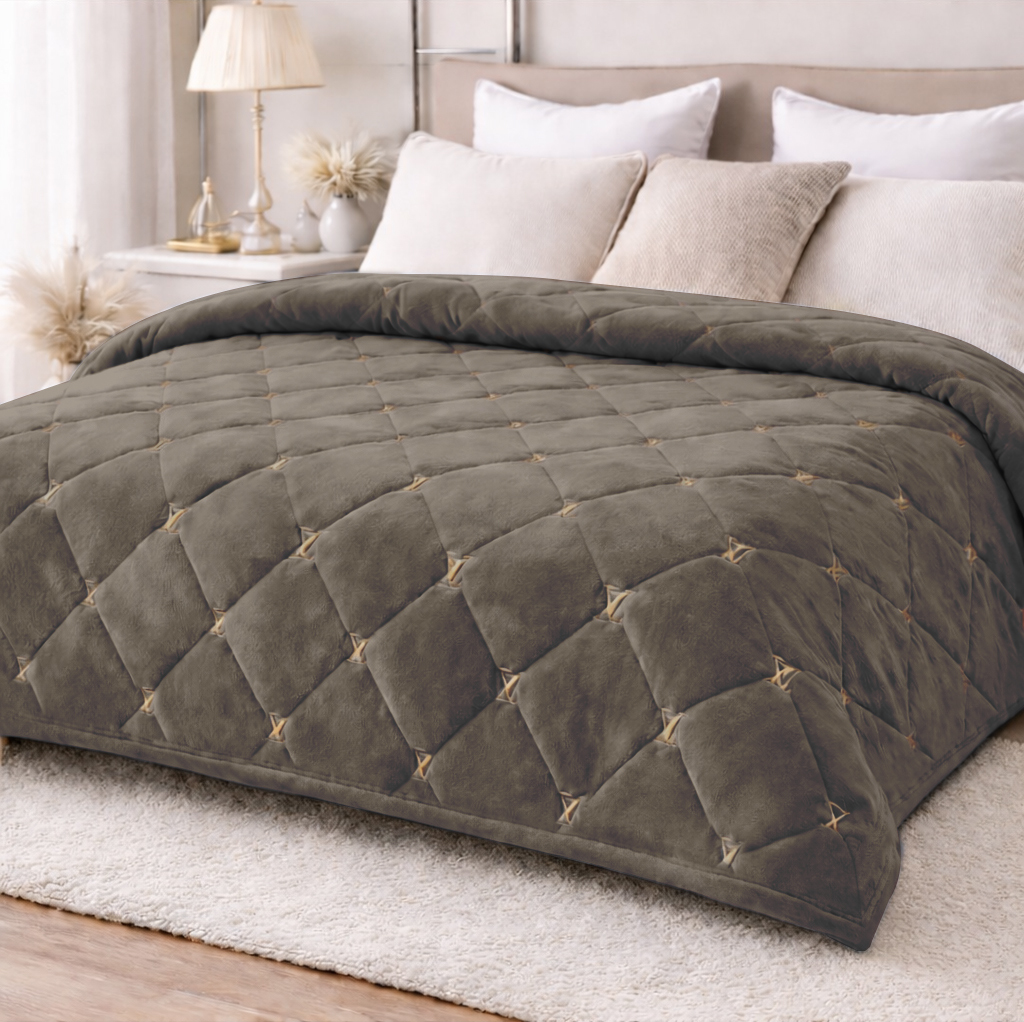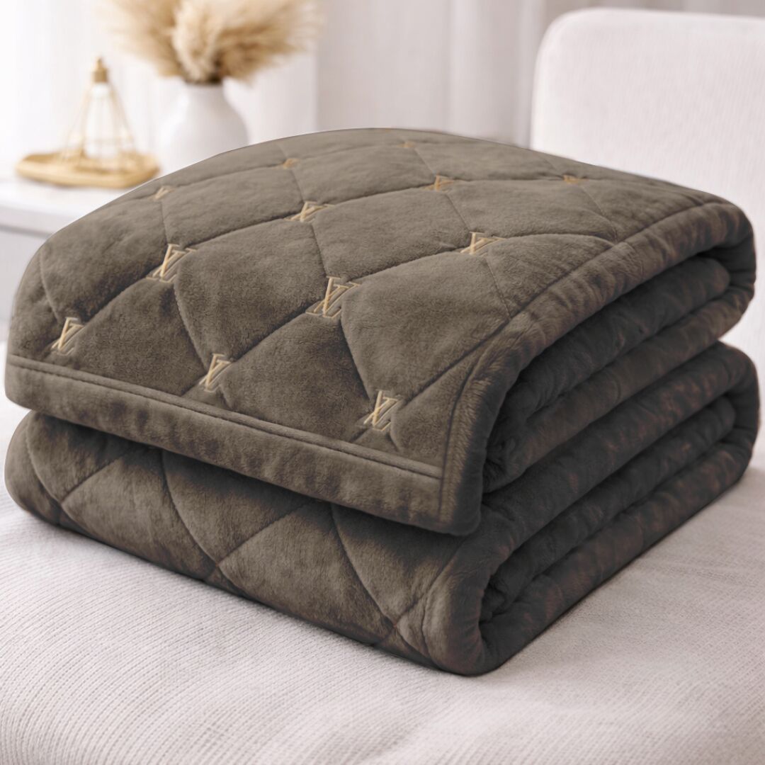 Покривало має м'яку ,приємну на дотик, текстуру завдяки велюровій тканині, яка надає йому вишуканий вигляд. Цей виріб легкий і водночас теплий, ідеальний для зимових вечорів або для створення комфорту Вашого спального місця чи дивану.