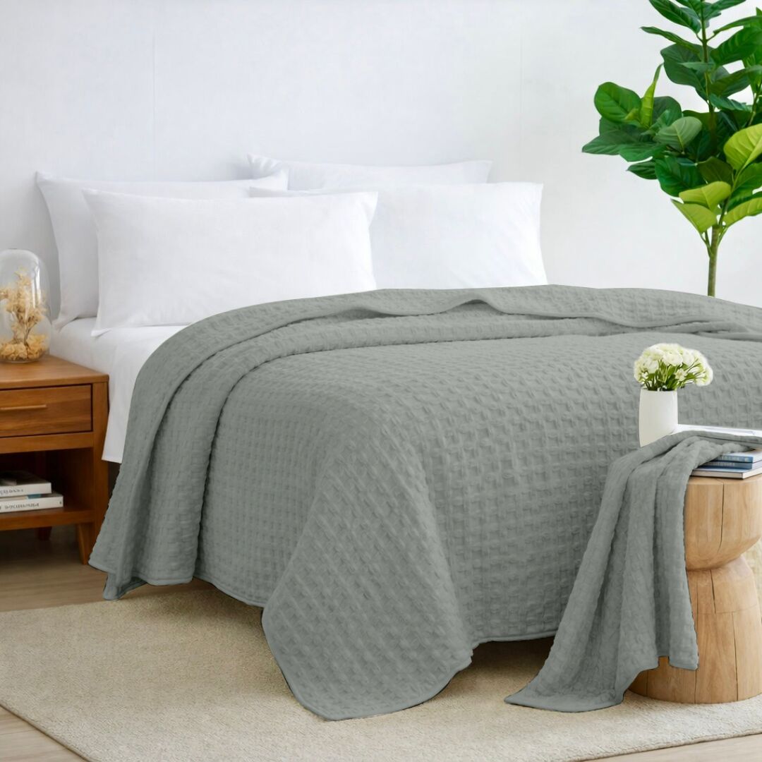 Вафельное покрывало создано для тех, кто ценит натуральность и практичность. Особая текстура ткани не только выглядит стильно, но и обеспечивает отличную воздухопроницаемость, позволяя коже дышать даже в жаркие ночи.